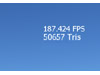 Scene 1: 50K+ polygon city model and terrain, rendered with 24-bit textures and lightmaps. Resolution: 1024x768x32 with 2x AA. Framerate: 187 FPS